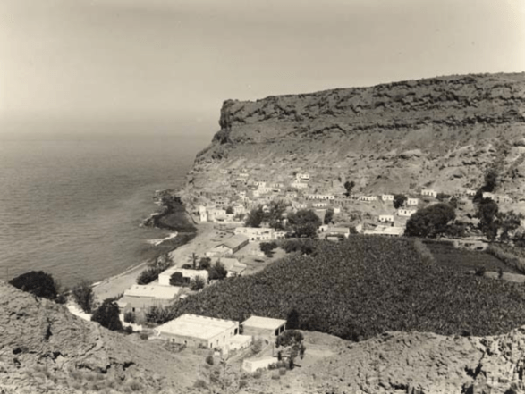 Puerto de Mogán von der Serpentinen-Straße aus um 1965.
