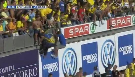 Eine schwarze Fußballwoche liegt hinter den Canarios: Erst das WM-Aus für Spanien in Brasilien. Und dann vergeigte heute Abend auch noch den UD Las Palmas den Aufstieg in die erste spanische Liga. Im Spiel gegen Cordoba (1:1) entschieden leider Chaoten der Canarios über den Nichtaufstieg! Alles sah in der 92. Minute so gut aus, als Las Palmas mit 1:0 führte. Die 31 240 Zuschauer im Estadio de Gran Canaria sahen ihren Verein bereits in der Premier League. Doch kurz vor dem Schlusspfiff stürmten sogenannte „Fans“ das Feld. Das Spiel musste unterbrochen werden. Die Polizei musste eingreifen. Nach der Unterbrechung sortierte sich Cordoba neu und erzielte in der Nachspielzeit – innerhalb weniger Sekunden – den Ausgleich.